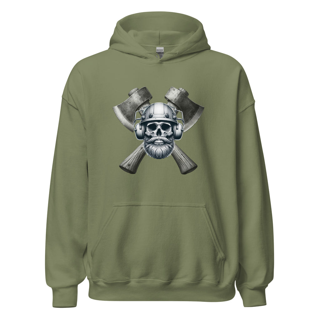 Bearded Skull in Hard Hat with Axe Unisex Hoodie